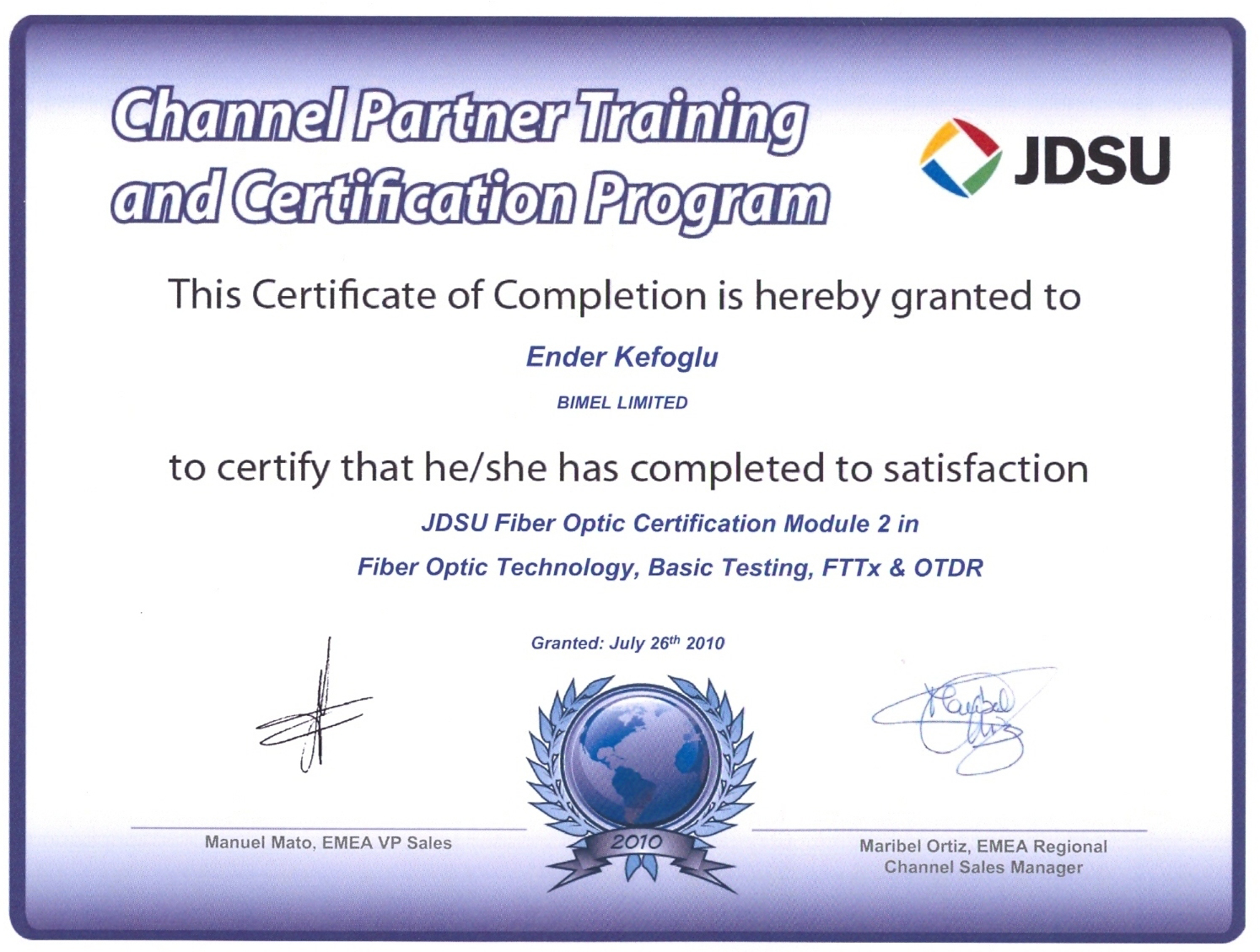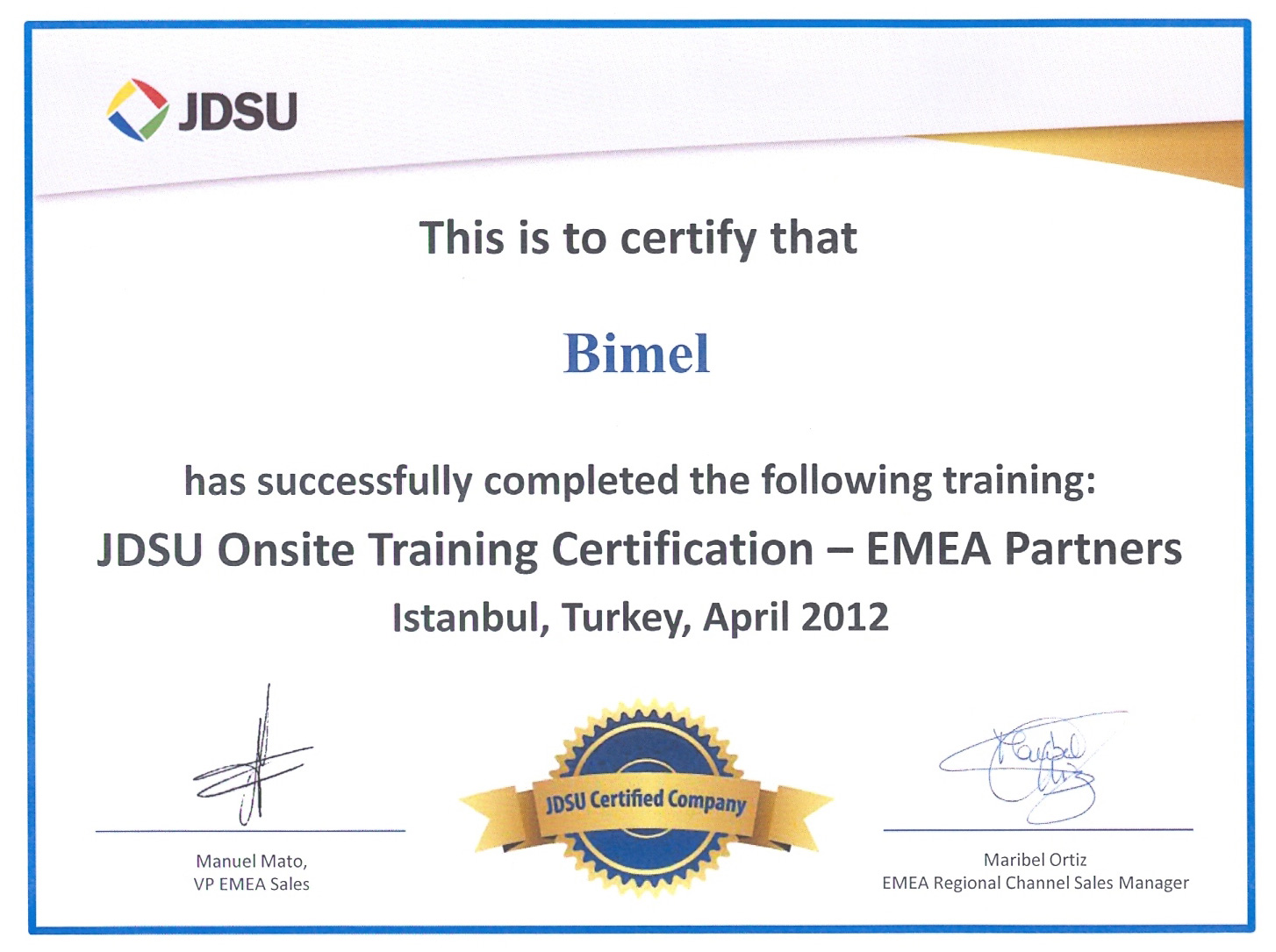 - JDSU Partner Sertifikası