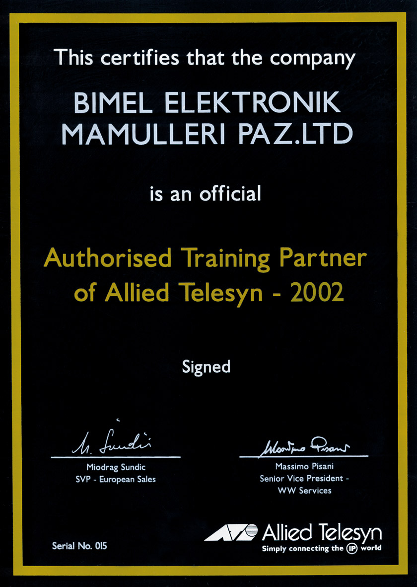 - 2002 & 2003 - Allied Telesyn'in Uluslararası Sertifikasını Vermeye Yetkili Tek Eğitim Merkezi