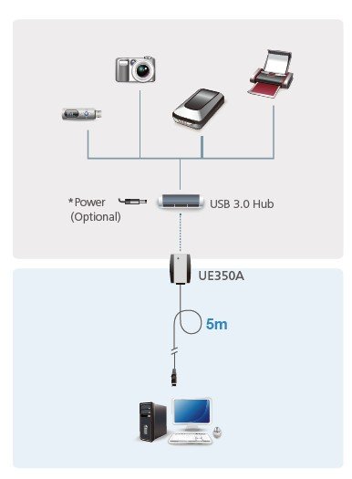 Kendisine bağlı USB cihazın sinyalini 5 metre daha uzatır