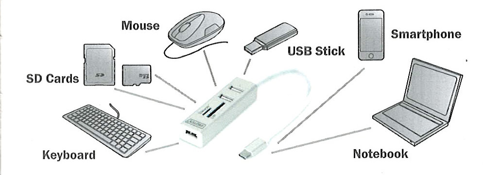 Digitus USB 2.0 Tip C 3 Port Hub, Kart Okuyucu, 3 x USB 2.0. 1 x SD, 1 x MicroSD kart yuvası, alüminyum
