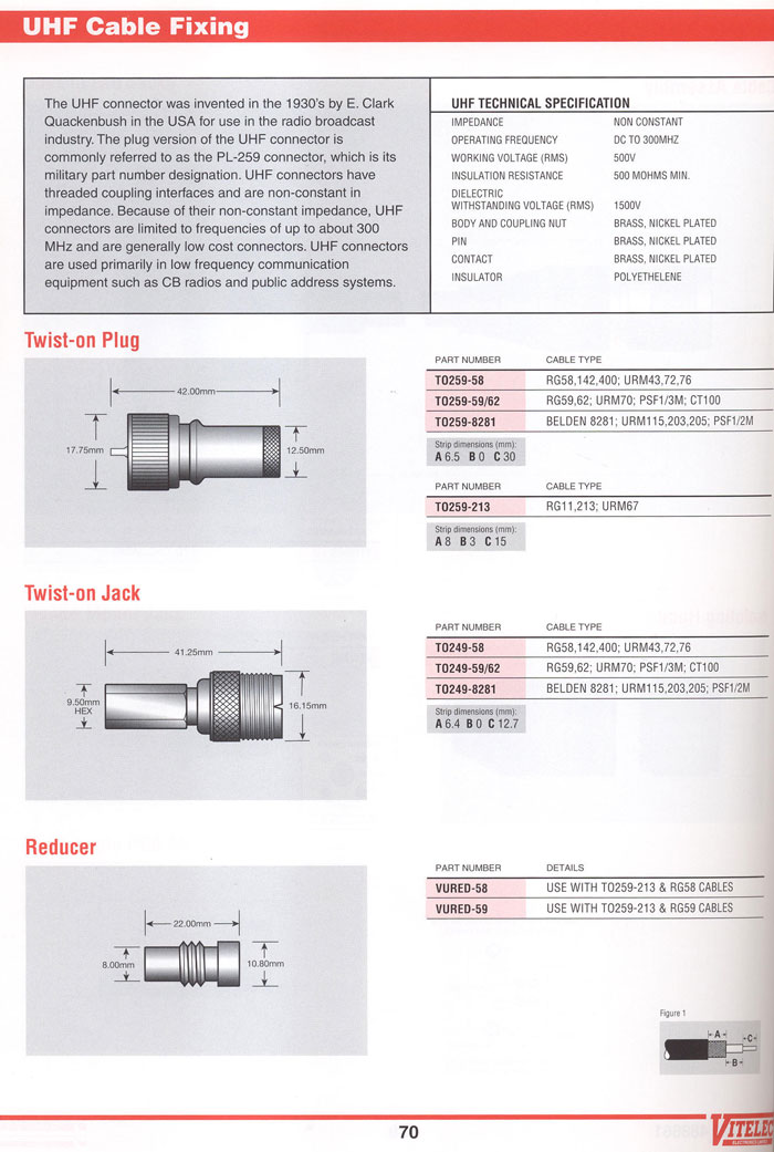 Cable Type: RG58, 142, 400; URM43, 72, 76