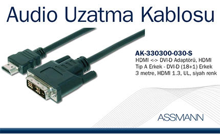 HDMI <-> DVI-D Adaptörü, HDMI Tip A Erkek - DVI-D (18+1) Erkek, 3 metre, HDMI 1.3, UL, siyah renk