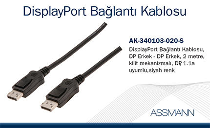 DisplayPort (DP) Bağlantı Kablosu, DP Erkek - DP Erkek, 2 metre, kilit mekanizmalı, DP, 1.1a uyumlu,siyah renk