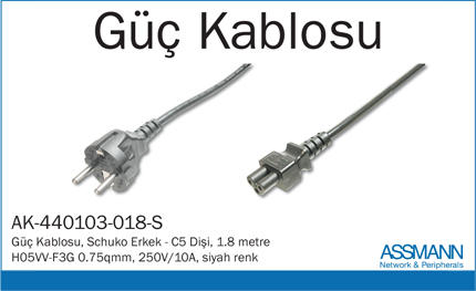 Güç Kablosu, Schuko Erkek - C5 Dişi, 1.8 metre, H05VV-F3G 0.75qmm, 250V/10A, siyah renk