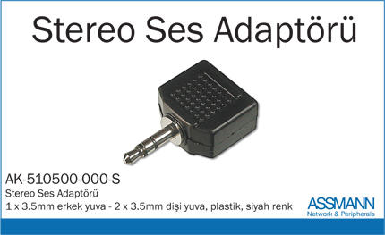 Stereo Ses Adaptörü, 1 x 3.5mm erkek yuva - 2 x 3.5mm dişi yuva, plastik, siyah renk