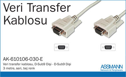 Digitus veri transfer kablosu, D-Sub9 Dişi - D-Sub9 Dişi, 3 metre, seri, bej renk