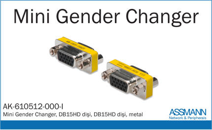 Digitus Mini Gender Changer, DB15HD dişi, DB15HD dişi, metal