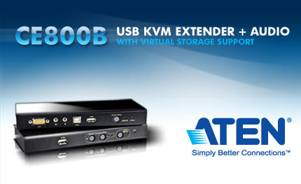 ATEN-CE800B, uzak noktadan 1 adet USB klavye, USB mouse ve VGA monitör, hoparlör ve mikrofon ile bilgisayarın uzak mesafeden yönetilmesini sağlar. Toz ve kir faktörünun yoğun olduğu fabrika ya da inşaat alanlarında, bilgisayar kasasının korunaklı ve güvenli bir yerde muhafaza edilmesi gerektiği ortamlarda rahatlıkla kullanılabilir. ATEN-CE800B cihazı lokal veuzak ünite üzerinde bulunan USB Tip B port sayesinde USB Depolama Aygıtı bağlamak mümkün. Bu sayede Depolama Aygıtı'nda yüklü bulunan bilgileri ATEN-CE800B'ye bağlı bilgisayarlar rahatlıkla paylaşabilir.