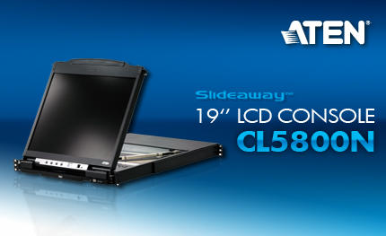 ATEN-CL5800NT, KVM Konsol modülü ailesine ait bir ürün olup; 19 inch LCD ekranı bulunan, Türkçe klavye (PS/2 & USB), touchpad'e sahip, 1U yüksekliğinde, kabin tipi, çift sürgülü kasaya sahip konsol cihazıdır. CL5800NT arka panelinde bulunan VGA monitör, PS/2 ya da USB klavye ve mouse bağlantı arayüzü sayesinde lokalde kendisine bağlı KVM switch cihazının ve dolayısıyla PC'lerin yönetilmesini sağlar.