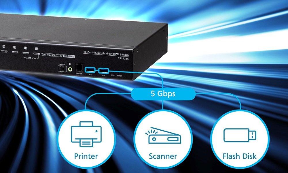 Ayrıca ATEN-CS19208, 5 Gbps'ye kadar veri aktarım hızları sunan dahili bir USB 3.1 Gen 1 hub ile birlikte gelir ve kullanıcıların işlemleri hızlandırmasına ve USB çevre birimlerini anında paylaşmasına olanak tanır. Kısayol tuşları, RS-232 komutları ve yeni tasarlanmış kullanıcı arayüzüne sahip OSD ile kullanıcı dostu port seçim yöntemleri sunan ATEN-CS19208, kullanıcıya zahmetsiz ve yenilikçi çalışma imkanı tanır.