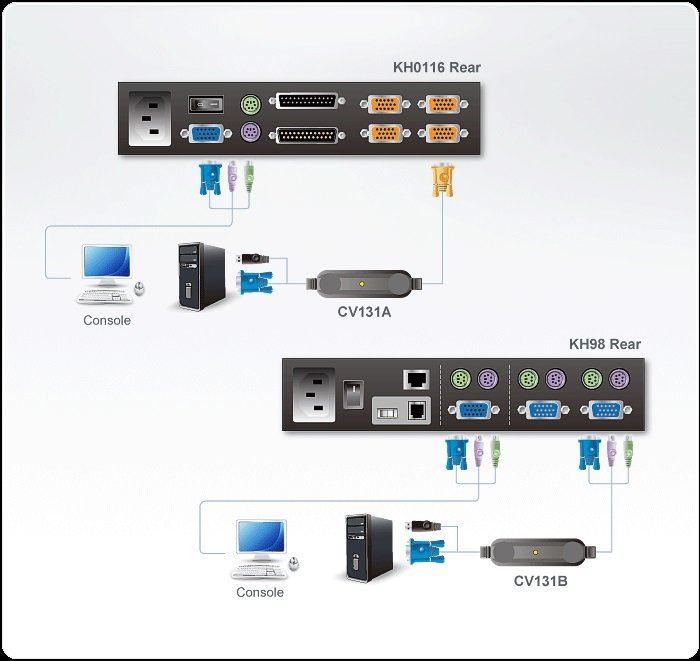 ATEN ya da ALTUSEN PS/2 KVM switch ürünleri ile uyumlu çalışır.
