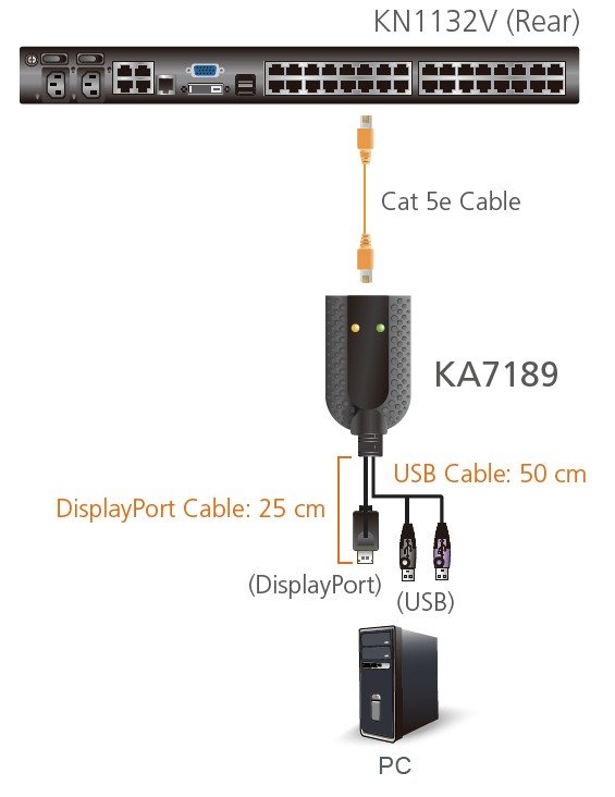 * ATEN-KA7189'un yeterli güç alması için her iki USB konnektörün de hedef bilgisayardaki USB bağlantı yuvalarına takılması gerekir.
