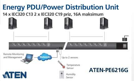 Energy PDU/Power Distribution Unit (Elektrik Güç Dağıtım Ünitesi), 14 x IEC320 C13 2 x IEC320 C19 priz, 16A maksimum