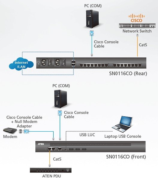 Auto-sensing DTE/DCE feature supports a direct connection to Cisco network switches (and other compatible devices) without rollover cables for more convenient IT infrastructure deployment