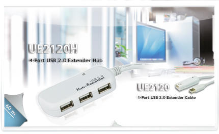 12M 4-port USB 2.0 Extender (Daisy-chaining up to 60m)