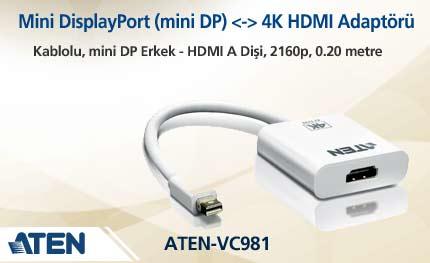 Mini DisplayPort (mini DP) <-> 4K HDMI Adaptörü, Kablolu, mini DP Erkek - HDMI A Dişi, 2160p, 0.20 metre