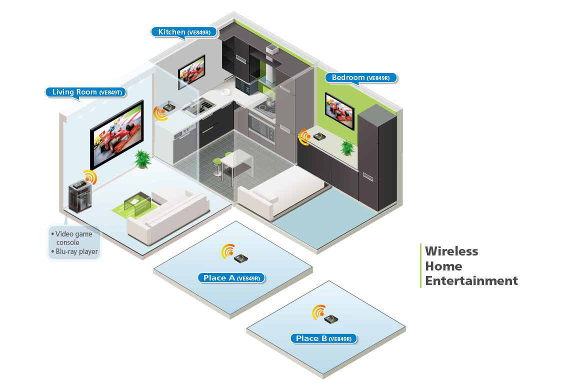 Blu-ray DVD oynatıcı, media player ya da diğer HDMI cihazlardan kablosuz olarak görüntünün aktarılmasını sağlar.