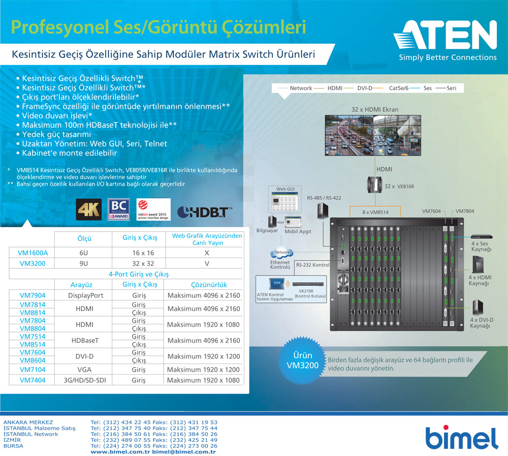 16 adet kaynak cihazın görüntü sinyallerini 16 adet ekrana aktarılmasını sağlar.