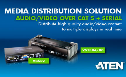 Cat 5e/6 4 Port VGA/Audio Video Çoklayıcı (Splitter), yüksek kalite ses ve görüntü içeriğini birden fazla VGA monitöre 150 metre (500 feet) mesafeden ulaştırılmasını sağlar. ATEN repeater ürünlerinin konumlandırıldığı kurulumlarda 3 kademeli kaskad bağlantı metoduyla ATEN-VS1504T binlerce monitöre görüntü ulaştırabilir. Seri bağlantı arayüzüne sahip dokunmatik ekranlarla bağlantı kurabilir. ATEN-VS1504T, multimedya içeriğin birden fazla noktaya ulaştırılması gereken projeler için ideal bir çözümdür.
