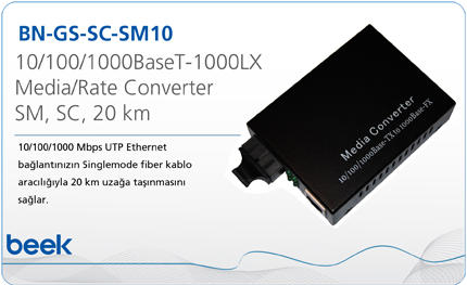 Beek 10/100/1000BaseT-1000LX Media/Rate Converter, SM, SC, 20 km