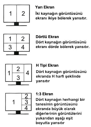 Ekran Görüntü Şablonları: Tam Ekran, Yarı Ekran, Dörtlü Ekran, H Tipi Ekran, 1:3 Ekran
