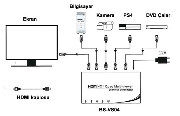 [short_description] => Beek 4 Port HDMI Switch, 4 giriş - 1 çıkış, 5 farklı görüntü seçeneği sunar, uzaktan kumandalı
