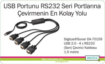 Digitus USB 2.0 <-> 4 x RS232 (Seri) Çevirici Kablosu, 1.5 metre