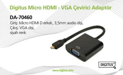 Micro HDMI <-> VGA Çevirici Adaptör, Giriş: Micro HDMI D erkek, 3,5mm audio dişi, Çıkış: VGA dişi, siyah renk