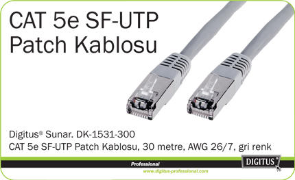 Digitus CAT 5e SF-UTP Patch Kablosu, 30 metre, AWG 26/7, gri renk