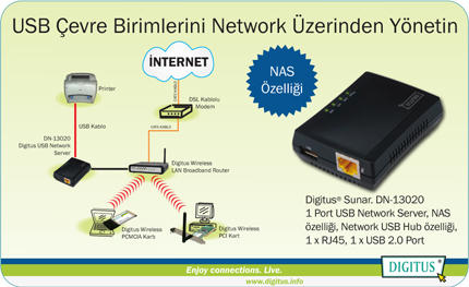 Digitus 1-Port USB 2.0 Çok Fonksiyonlu Network Server