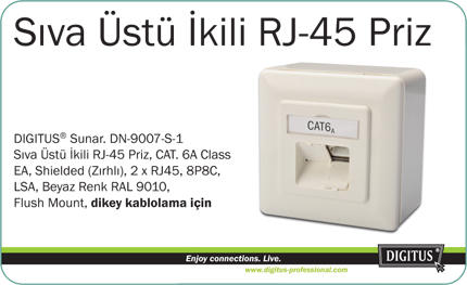Digitus Sıva Üstü İkili RJ-45 Priz, CAT. 6A Class EA, Shielded (Zırhlı), 2 x RJ45