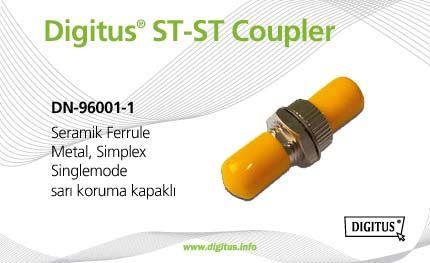 ST-ST Coupler, Seramik Ferrule, Metal, Simplex, Singlemode, sarı koruma kapaklı