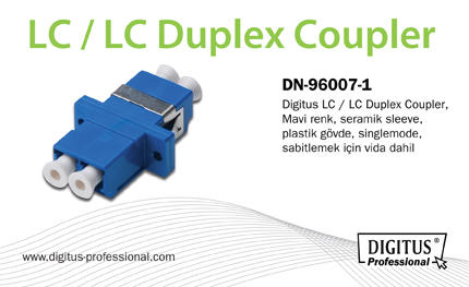 Digitus LC / LC Duplex Coupler, Mavi renk, seramik sleeve, plastik gövde, singlemode, sabitlemek için vida dahil