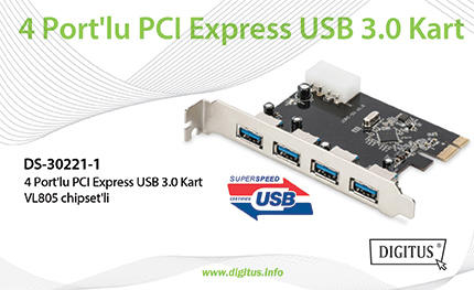 Digitus 4 Port'lu PCI Express USB 3.0 Kart, VL805 çip takımı