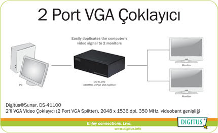 Digitus 2’li VGA Video Çoklayıcı (2 Port VGA Splitter), 2048 x 1536 dpi, 350 MHz. videobant genişliği