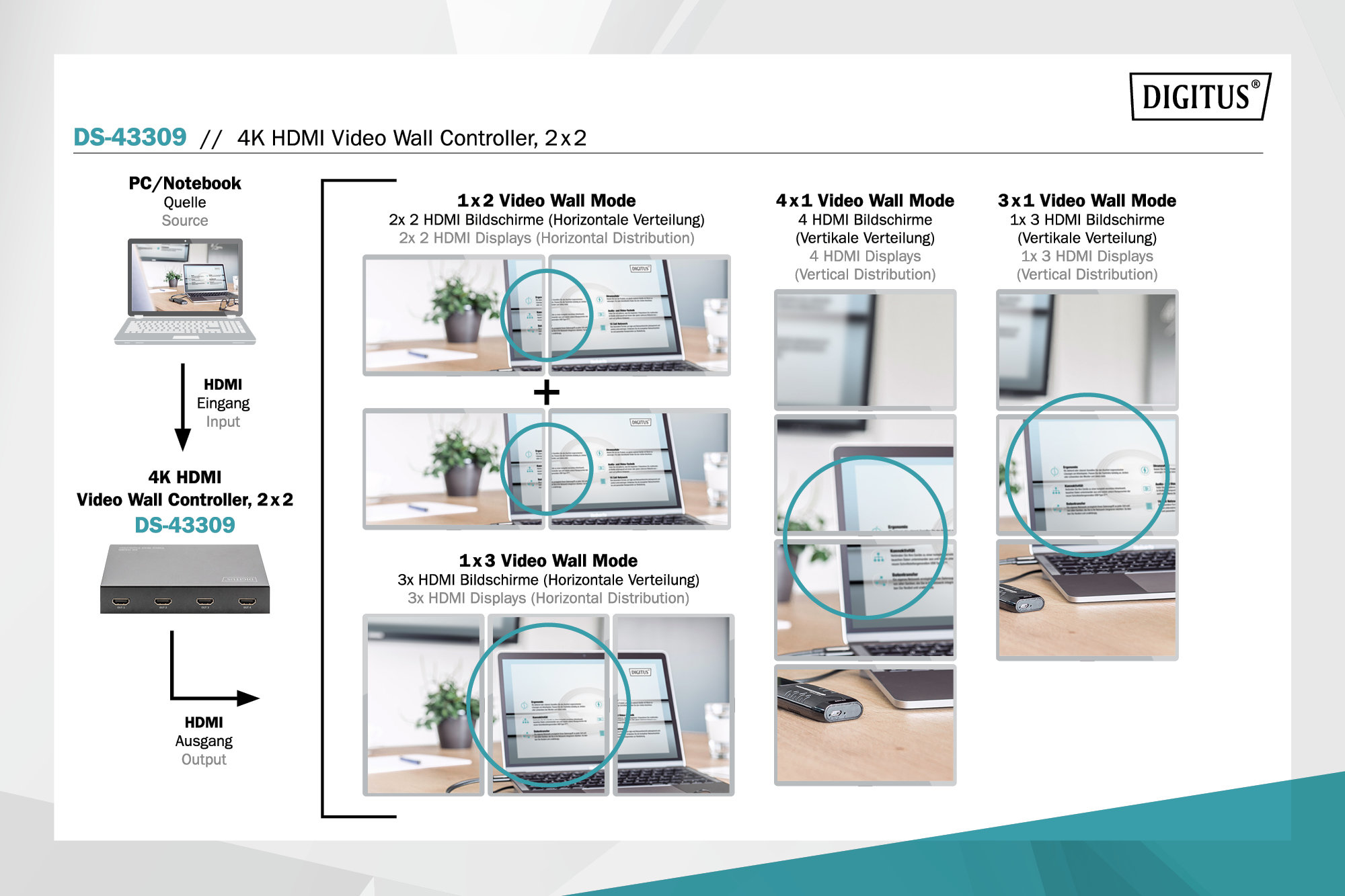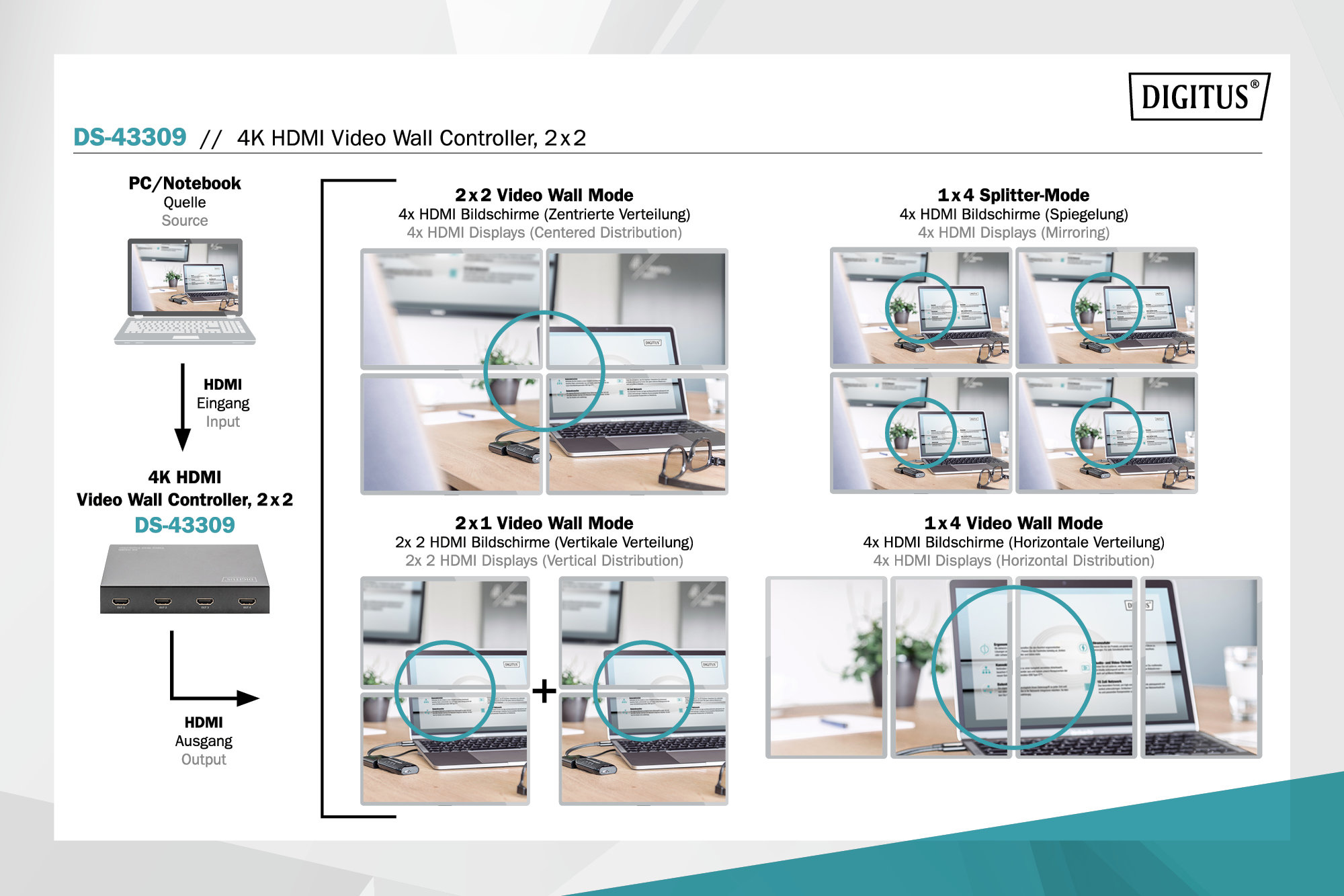 Digitus 4K HDMI Video Wall Controller, 2 x 2