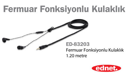 ednet Fermuar Fonksiyonlu Kulaklık, entegre mikrofon, 1.20 metre