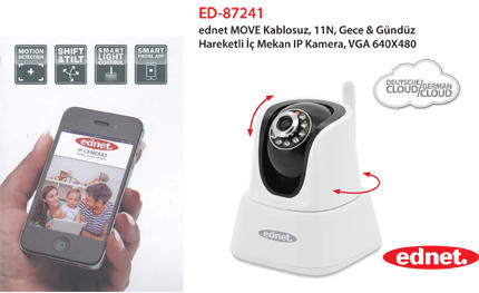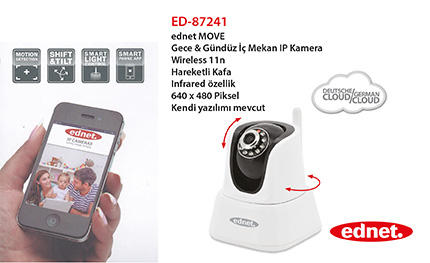 ednet MOVE Gece & Gündüz İç Mekan IP Kamera, Wireless 11n, Hareketli Kafa, Infrared özellik, 640 x 480 Piksel