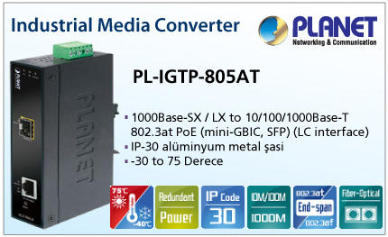 1000BASE-SX /LX <-> 10/100/1000BASE-T 802.3at PoE+ Injector (Port başına 30.8 watt)