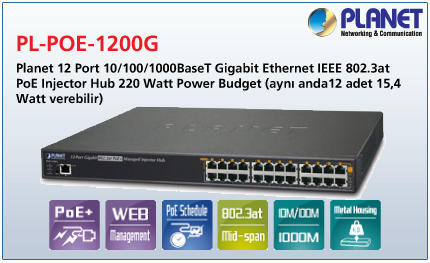 PoE Güç Bütçesi maks. 220 Watt (aynı anda 7 adet 30,8 Watt veya 12 adet 15,4 Watt verebilir)