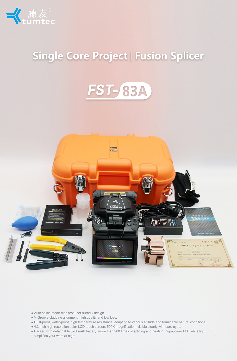 | No of Splice / Heating with Battery | 5200mAh Battery Capacity, Typical above 280 times (Splice+Heat) |